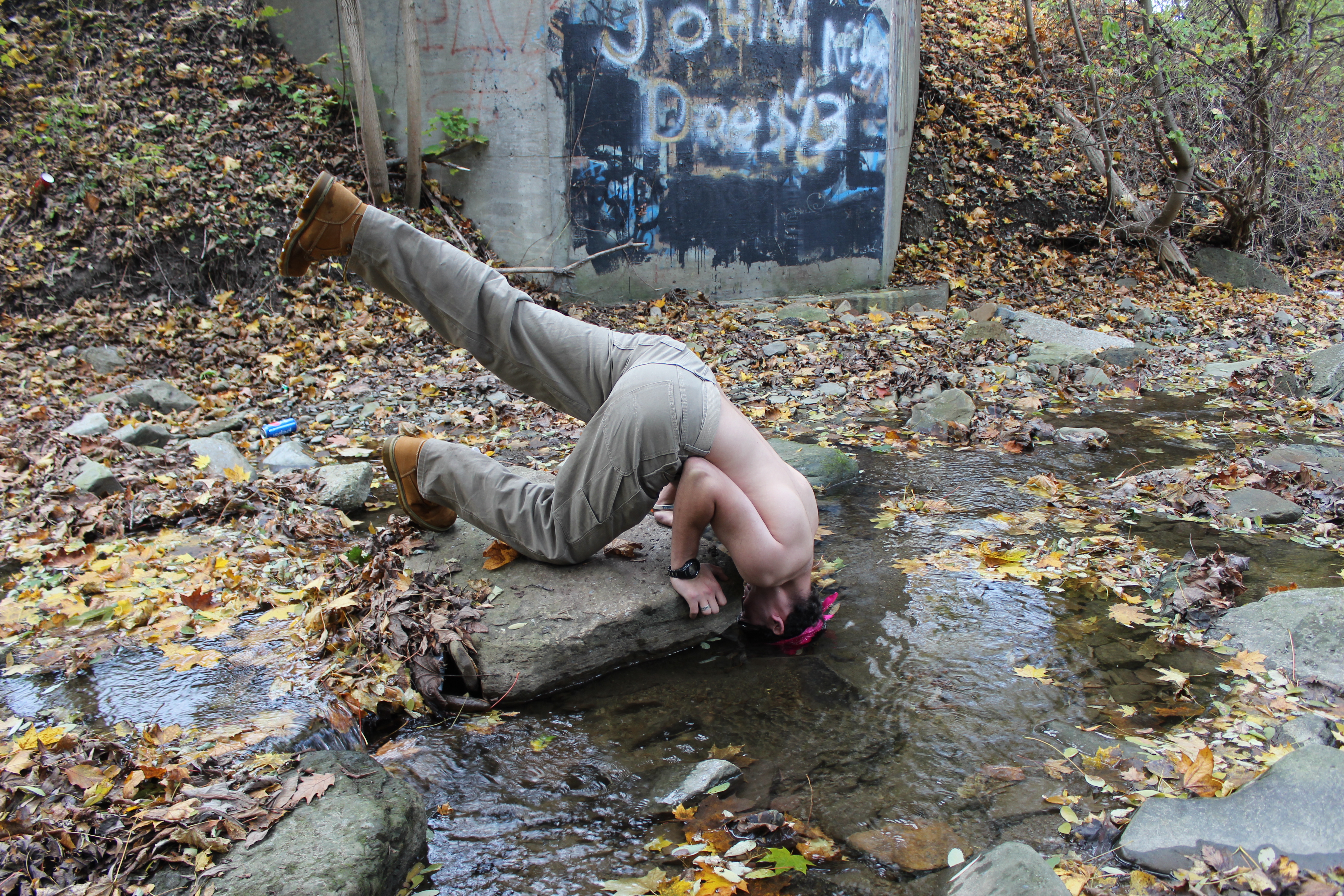 For my location I chose a rock in the middle of a creek that runs behind the Cohen studios and is under a cozy green bridge. (see picture)