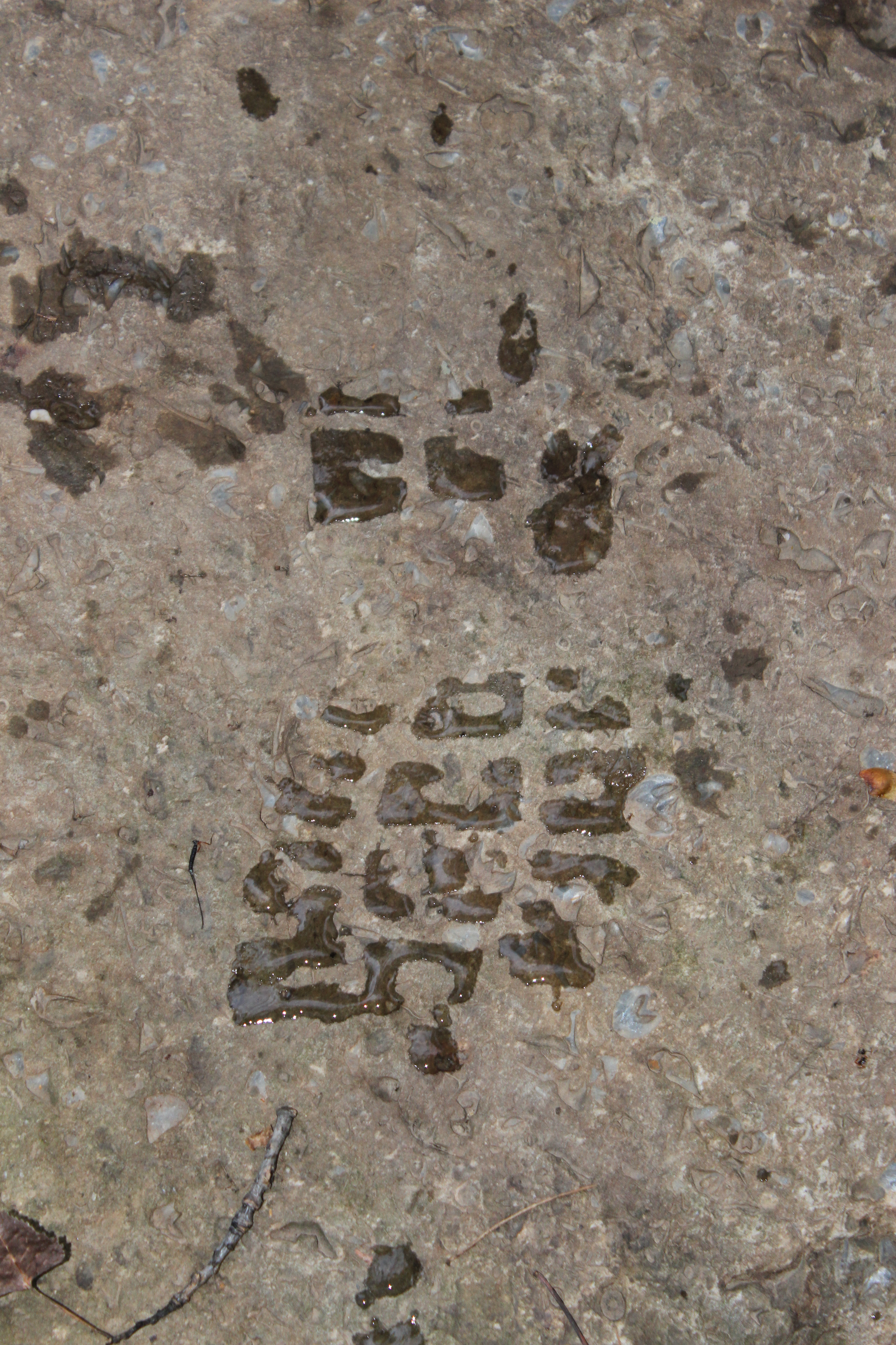 in order to find my spot i started my walking out of the Cohen studio and int the creek (i love creeks). i walked along it until i found the perfect spot. Next I stepped out of the creek and onto my rock and observed how the water off the bottom of my boot puddled and formed a wonderful boot print!