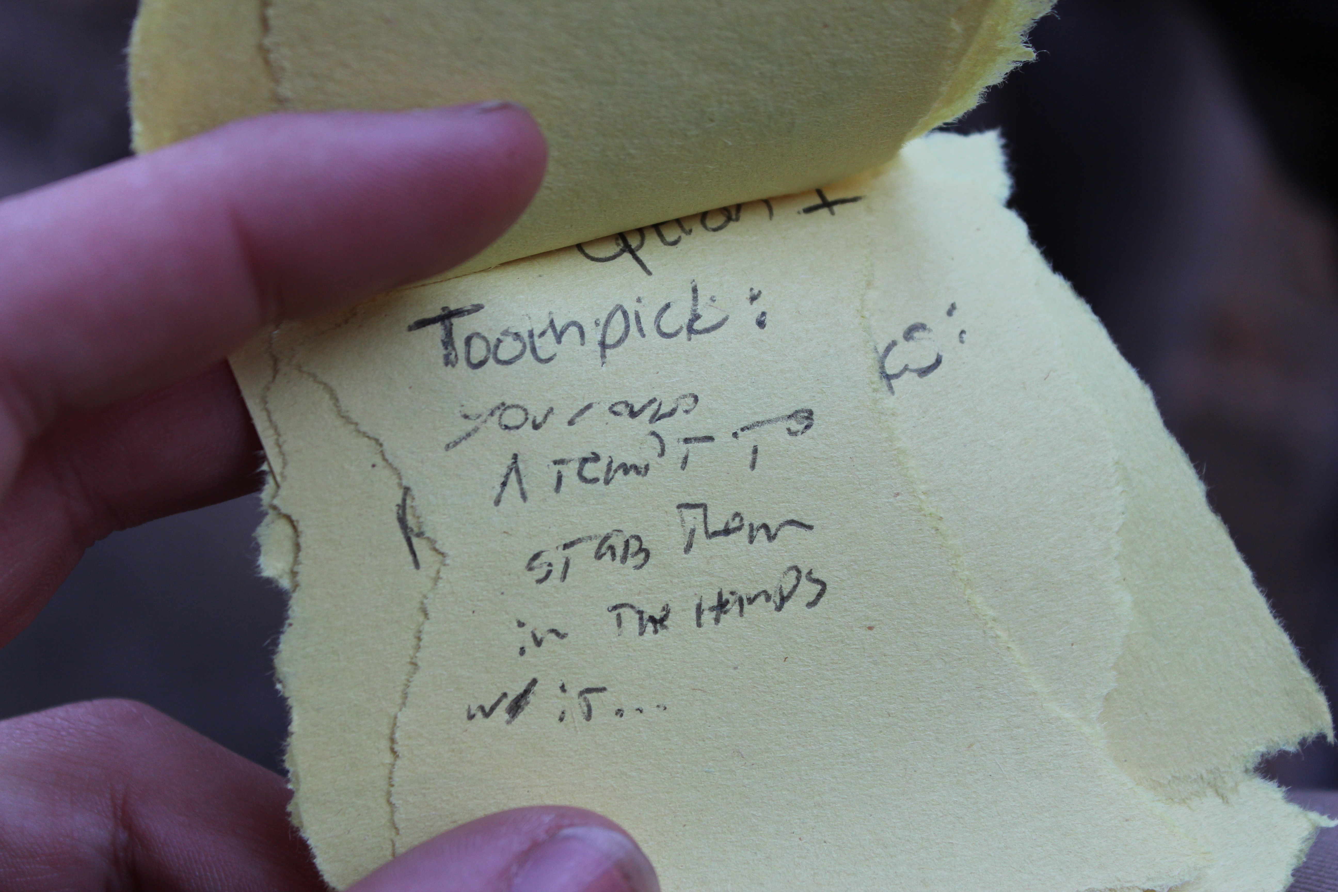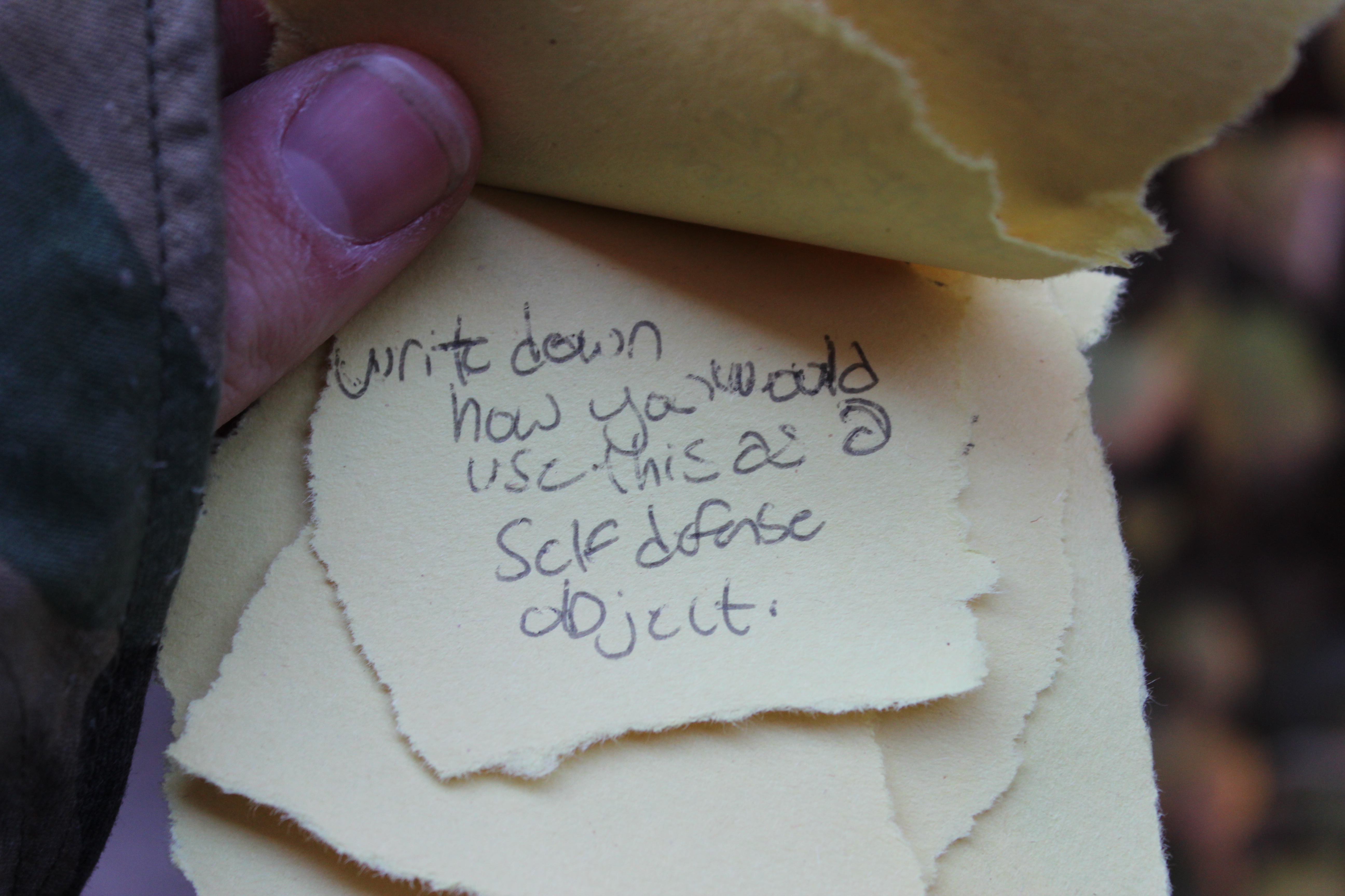 And it had us go into a small alley and describe how we would use each of the objects in the jar to defend ourselves if need be.